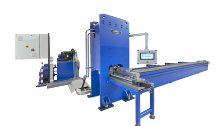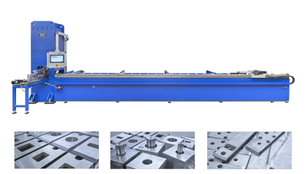 Zwaar uitgevoerde degelijke ponsbank, ontworpen voor het geautomatiseerd ponsen van diverse gatenpatronen in stalen strips. Na het ponsen wordt het profiel afgekapt op de juiste lengte. Naast stalen strips is deze machine uiteraard ook geschikt voor vele andere profielen in staal, aluminium, RVS etc.