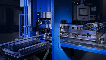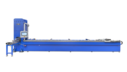 Zodra de operator het stalen profiel heeft geplaatst, wordt deze door middel van een opduwsysteem automatisch doorgevoerd. De opduwer positioneert na iedere ponsing het profiel zodanig dat de ponsunit ongestoord door kan gaan. Nadat het gehele profiel is bewerkt wordt deze op de juiste lengte afgekapt.