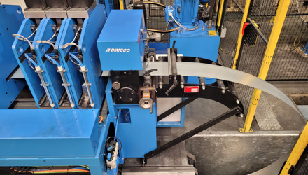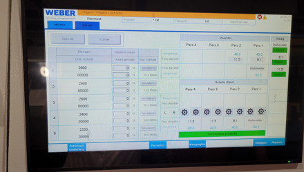 Voorzien van aanvoerapparaat met een aanvoersnelheid van max. 140 m/min. Persstoter is voorzien van een dubbel uitgevoerd pneumatisch gestuurd mechaniek om de ponsbeugels individueel in- en uit te schakelen, waardoor er een wisselend gatenpatroon kan worden aangebracht. Touchscreen display met ingebouwde PLC voor het opslaan en oproepen van diverse programma’s en het aanpassen van de parameters voor het instellen van de persen en ponsbeugels. Deze ponsmachine is als standalone machine geplaatst in een bestaande productielijn en gekoppeld aan het bestaande besturingssysteem.